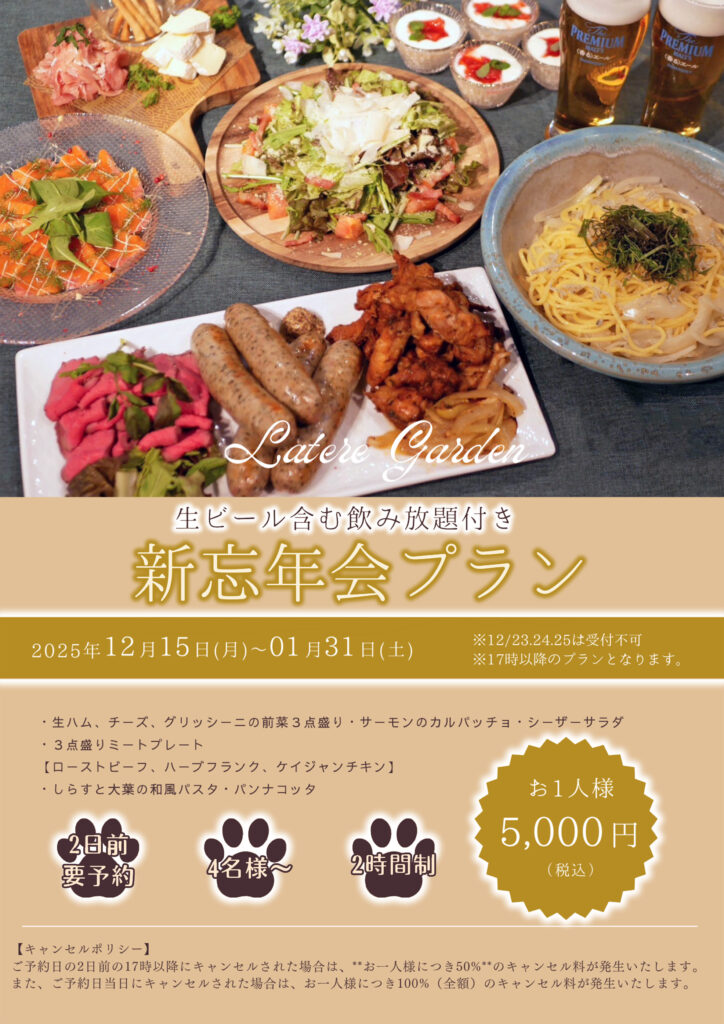 ご予約日の2日前の17時以降にキャンセルされた場合は、お一人様につき50%のキャンセル料が発生いたします。